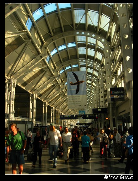 大家注意:采用了透视构图的方法,忙碌的人群和建筑顶部有节奏的钢结构形成对比.