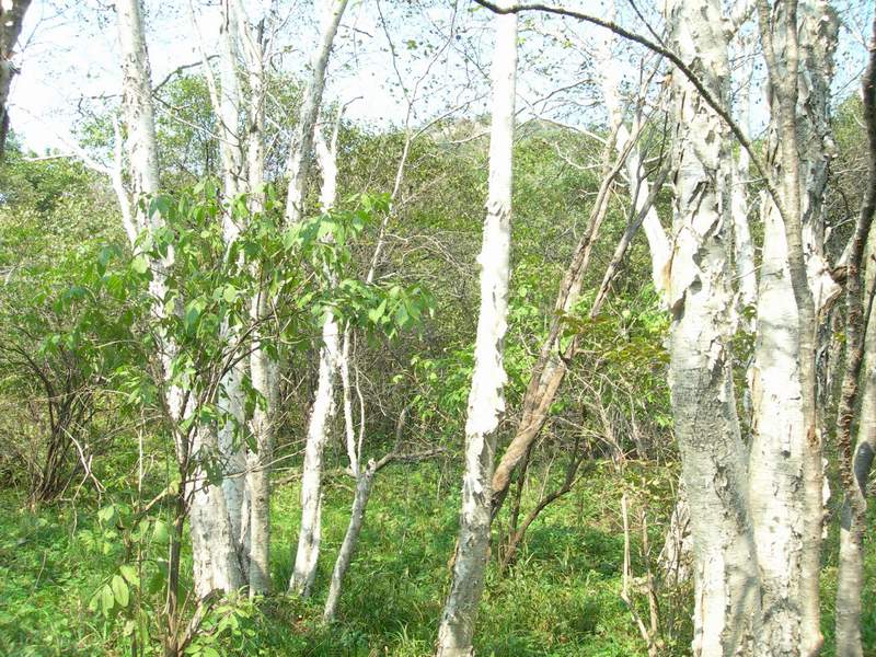 河道只走了一会,就又变成了灌木为主的山坡,此时的山间小路也分辨不出来了,只能靠开路前进。虽然开路的重任落在了石头身上,跟在后面的我也还是时不时地左顾右看,细细辨别着周围异常的东西和声响。先是一小块无草的土地,一看就象是什么动物扒拉过的,那我们相信这可能是野猪干的;还有一次石头走着走着,突然停了下来,并努力地向灌本深处看去,我也开始放轻脚步靠近去,只见树林里一个块黑乎乎的东西,难道那就是传说中韭菜顶子山上的熊!!!