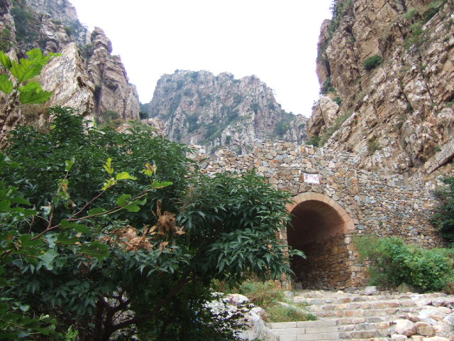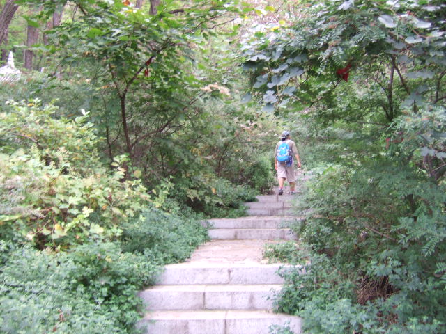 沿台阶登山进入石鼓寺
