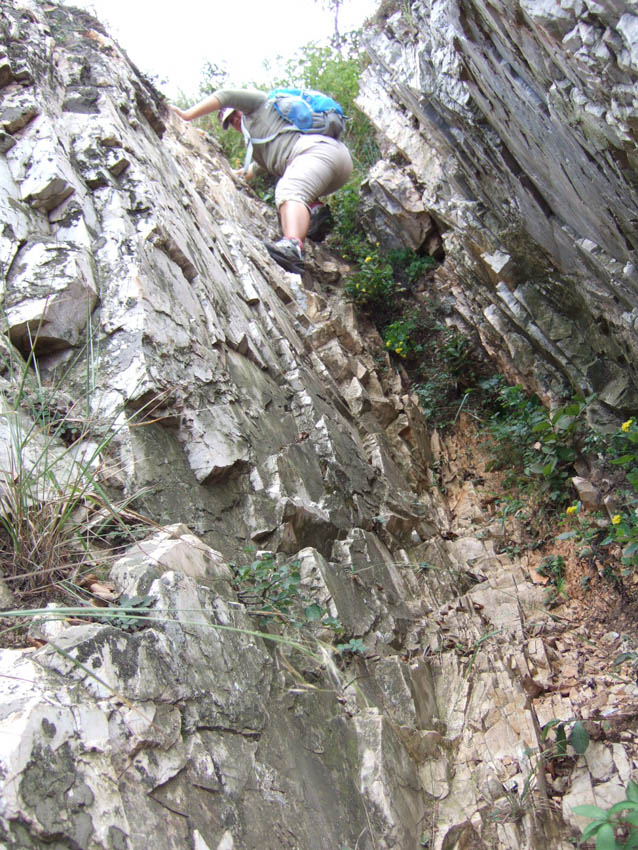 然后沿一石壁攀岩而下(很危险,估计有20分钟路程)