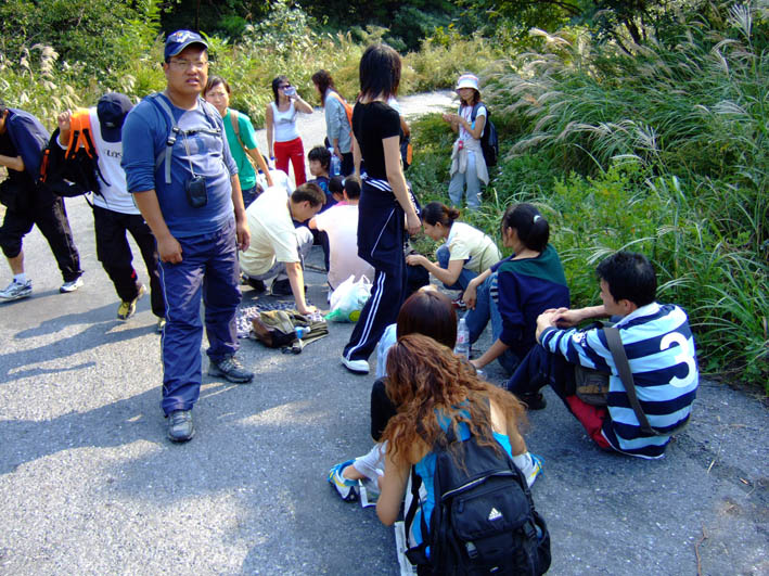 寺庙外休息的同学!