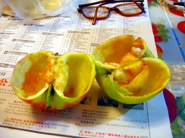 我妈的手艺高吧,吃到最后,一个完整的苹果就这个样子了。