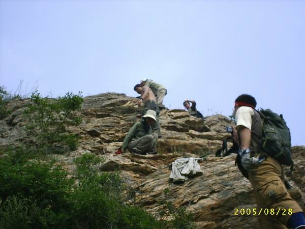 相互寒暄一会儿,bear和林栖以及+1也来到了,整理好行装后bear的朋友用车把我们一行六人送到山脚下,时间是7点55分开始了我们这次自虐穿越行程。