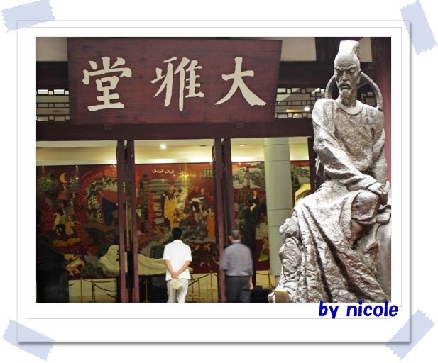 分别买票,订票之后,我们再次坐车去杜甫草堂和武侯祠。个人感觉更倾向于杜甫草堂,那里好像更值得一看,不像武侯祠,就是一座座纪念堂,可惜了那些宏伟的古建筑群,也辜负了我不远万里来这里的一片赤诚之心。这里好像不是纪念诸葛亮的地方,而更多的宣扬了刘关张结义之情以及三国。
