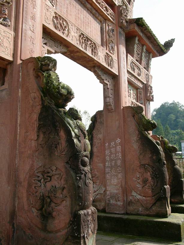 嘿嘿, 这个刻在牌坊上的标语是不是有点损坏文物的嫌疑啊