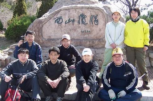 2005年4月10日,福气召集,静石带路,从动物园南门的缆车下上山,有很明显的小路直通向山顶的塔;到达山顶后顺着水泥路面向西走,走出大约100米右侧有条下山的小路,顺着这条小路下山,进入森林动物园内。走到园内的柏油路上,可以向西南侧上晚霞山,也可以向西北侧上迎客山,顺着山脊走到莲花山,最后到白云山,在北石道街附近下山。