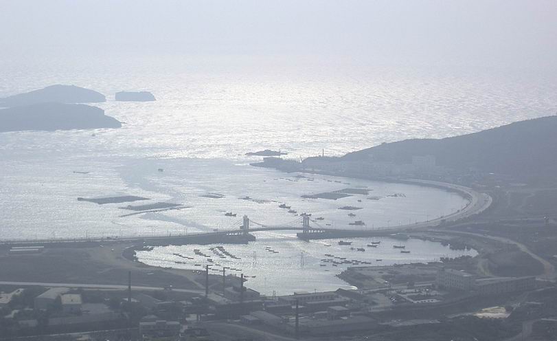 行程:早晨8:20集合完毕,由信用证带路沿北河口南侧的山路上山,在一个小山坡上,建有一个观音台,能看到小平岛的全貌,到山顶后,沿着铁丝网的外围走,有还算明显的山路,在最高的山峰处建有一个火灾观测塔,这是这条线路的标志,过到达这点后可以有多种走法,信用证说可走南部的山脊册(图中的虚线部分),可以走南侧的山沟,也可以走北侧的山脊。我选择了走北侧的山脊,这是信用证没走过的线路,走到山腰处,有一条备战路,(其实已经长满了树,中间只有一条小路可走)。现在回想应该顺着这条路向山上走,我选择了向下走,在山腰处有一块很平坦的柏油路面,我们在此吃午餐,此时为11:40。