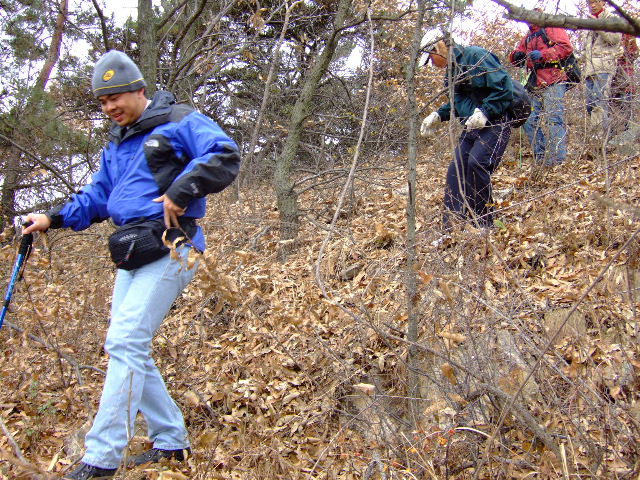 总结——很抱歉此次活动组织的不是很有意思!即没看头(景色——山上一片破败景象),又没玩头(没附加一些游乐或者游戏之类的点缀,下次改进——让大家乐哈哈一路)!蛭?猩街写┰侥谌荩?行┩?У呐涫涡枰?⒁猓??话紫沽耍×硗猓?欢ㄒ?嘲??庋?艹浞终展税踩?矫妗??饕?悄馨涯愕男∈痔诔隼矗“巢慌伦橹?疃???掠幸馔馇榭觯?lt;br>以下内容给新驴看看——冬季已经来临,喜欢户外的同学,不必准备很多装备来应付这种活动的,千万不要成为户外装备的奴隶!户外装备得了银子了,除非你很有钱,不太在乎!冬季活动呢,只要注意我说的方面就成了,一个是鞋子,这个呢,应该奢侈一点,毕竟脚是你最该爱护的对象,成天的载着你到处流串,多辛苦!有一双合脚舒适的鞋子很关键!因为经常要在山内溜达,所以尽量还要考虑鞋子的防滑性和耐磨性能!再就是花个六、七十块搞套吸湿排汗的内衣比较有用,因为爬山或者徒步不可避免的会出汗!出汗呢,就会湿衣服,一旦风吹或者停留,你会感觉身上嗖嗖冷!不仅如此,还会坐病,至少你的身体不好,可能就会感冒!这种东西,虽然不能把你湿湿的表皮都能透干,但还是能起点作用的!其它的就无所谓了,衣服呢,找个不怕刮的,或者经刮的,或者坏了不心疼的……都行!总之,不要把要过年的新衣服拿去穿山上去!要是那样——彪了!