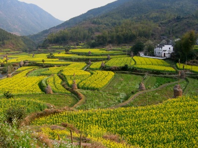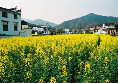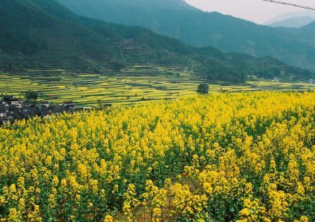 ——第一次走进油菜花地,近距离看油菜花,闻油菜花。虽然李坑的油菜花地比东北农家的自留地大不了多少,而且还竖着牌子:进地罚款。可是,谁能抗拒阳光下大簇嫩黄的油菜花娇艳艳地向你耍嗲呢?我不能。啉哒也把持不住,走进油菜花地回眸一笑,镜头里一片嫩嫩的鹅黄色包裹着她,顿时理解梅艳芳那首《女人花》的意境:女人花摇曳在红尘中,女人花随风轻轻摆动。。。