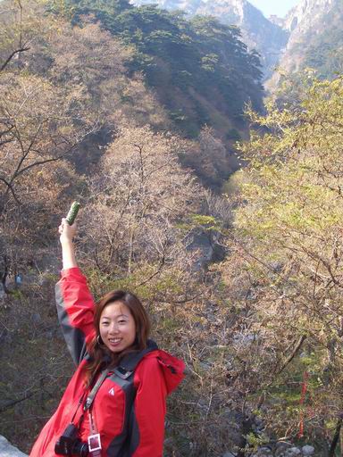 太阳很暖和,都困了,然后,我就看到有一队驴子浩浩荡荡鹤立鸡群的从我前面走过去:负重、登山杖。俺看着他们的装备,很想知道他们是从哪条路上来的,肯定不是平淡的台阶咯,肯定有不一样的风景吧。胡思乱想的差不多了想举起相机拍一张时他们已经走远了,后来到玉皇顶后俺四下撒摸,却在没见着驴子门的踪迹,不知道他们把帐篷扎到哪里去了。