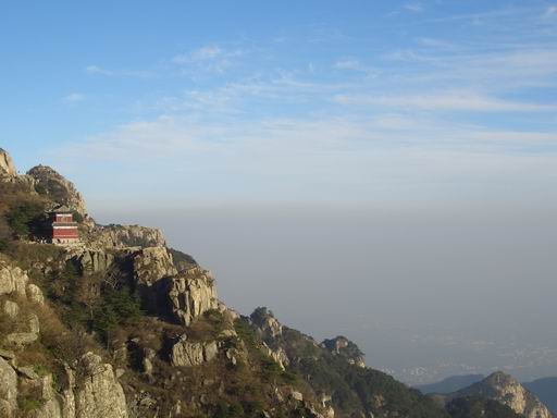 在一位号称厚道的小伙子的带领下,住到了旁边的一个有墙壁的有被子的房间里。选择了等待明天,心下也塌实了,又出来溜达了一圈,玉皇顶、观日峰——山顶有一喇叭很执着的叫卖着:“面条、饺子,欢迎品尝”,恩,俺已经品尝过了,10元/碗的面条在饥饿的人嘴里还是很美味的。