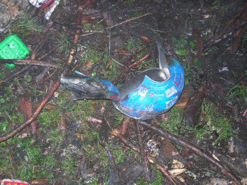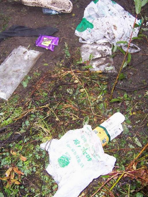 6 天的燕子沟之旅结束,我在这里写这篇文章回顾此行不愉快的一部分。希望能给大家提个醒,收拾好自己的垃圾,并希望文中提到的人和队伍能够在以后的活动中注意环保,能作出补救措施更是我们大家所希望和欢迎的。 2005 年10 月2 日中午1 点,我队来到燕子沟倒栽葱营地,到达营地时,我和队友都表达出了对这个营地的赞美之情,开阔,干爽,美丽,近水且水质甘冽,让我不由得拿起了5年前人中海营地做比较,得出的结论时是,居然还有能与当年的人中海营地相媲美的地方让我们露营。 约下午4 点,正在修整的我们看到大队的人马来到了倒栽葱营地,顿时打破了营地的宁静气氛,我们最初有些遗憾的觉得怎么这里成了个旅游热点地区,很快,一种乐得有伴得情绪占了上风,愉快得接受这些新来得帐篷。从对话中我们了解到这是一群重庆人,28 个人,不是一个俱乐部,是重庆侠客行组织的。营地开始下雨,看着这些人慌乱的撑着崭新的帐篷,我也上去做个热心人帮了些忙,并提醒他们注意收拾自己的垃圾。在随后的两个小时中,总共大约又有30 个人到达,据我了解的情况,其中除了两个人是成都的外,其他的都是重庆过来的。这个夜晚在喧闹中度过。   主要事件发生在第二天下午,也就是10 月3 日下午,我队在营地修整,约有一半的队员在倒栽葱沟加固小桥。大约50 人的重庆队伍上午9 点出发去看冰川,下午2 点左右返回倒栽葱营地,并开始收拾行李准备下山,这时的情况看起就比较糟糕了,营地上开始出现大量的垃圾,有生活垃圾,还有雨伞,烂雨衣,酒瓶,气罐等,这些东西在下面的图片中列出。我队队员站在雨中,不停的提醒这帮人收拾自己的垃圾并带下山,包括侠客行的一位自称是领队的人,对我们的善意提醒,他们的态度倒是不错,满口答应,但随着他们和运送他们行李的马队的离去,营地周围留下了大量的垃圾。还有一件事情我还要提一下,在10 月2 日傍晚,一个重庆侠客行的成员提着一把大刀在营地上乱砍红柳树,我制止他时他慌乱的找了两个荒唐砍红柳的借口――要打地钉和红柳离他的帐篷太近了,幸好在我们的制止下他停了手,不过已经有两丛红柳树遭殃。 YBpBg244.jpg