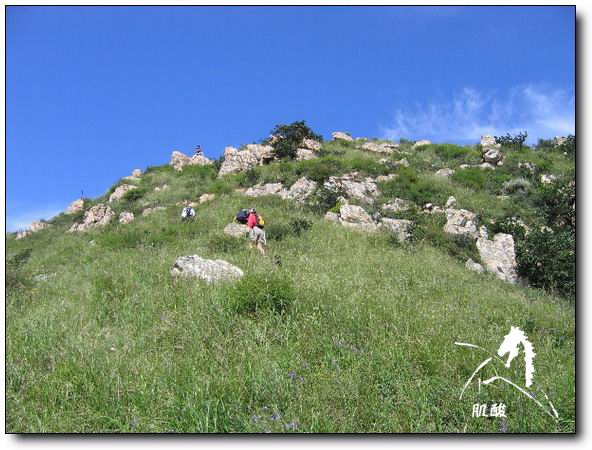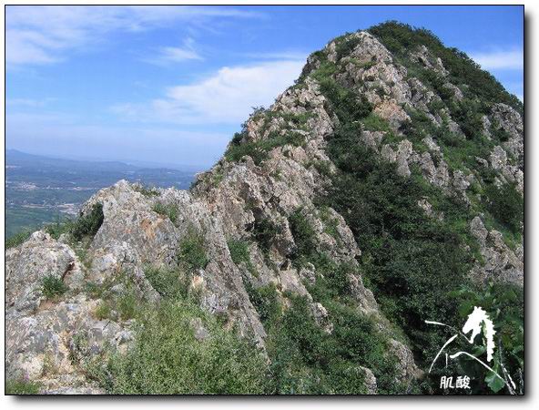 8月20日,我们一行4人(其中最小的那个是我的儿子,13岁)从大黑山东侧类似奔儿头的山脚下开始登山,60多度的山坡从9.30分开始爬到山顶时已经11.30分.休整补充能量后,开始穿越"刀背".在穿越"刀背"后继续行进的下一个山峰处,遇到欢声笑语的一只队伍,看样子是要在山上宿营.一打听,原来是"穿越者".哈哈,大鱼做了自我介绍,我也报了自己在"穿越者论坛"注册的网名,虽然没有参加过"穿越者"的活动,但也算是在论坛上经常拍拍砖了,并不陌生.希望有机会一起进行穿越.