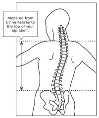 A、测量躯干长:从颈后隆起的椎骨开始,沿脊椎拉皮尺至与髋骨上缘等高的后腰部。
