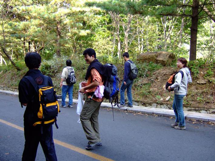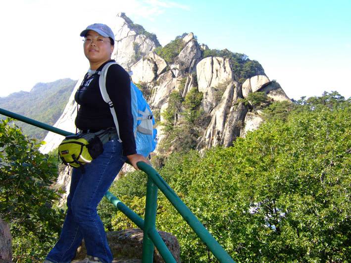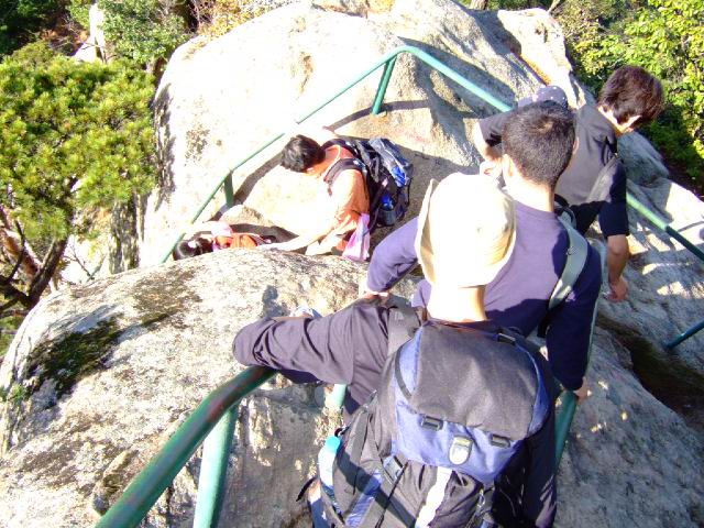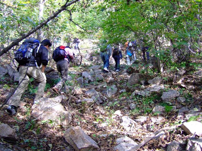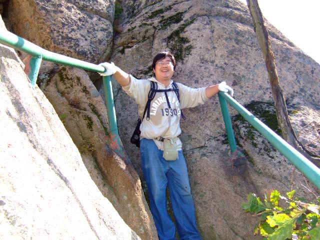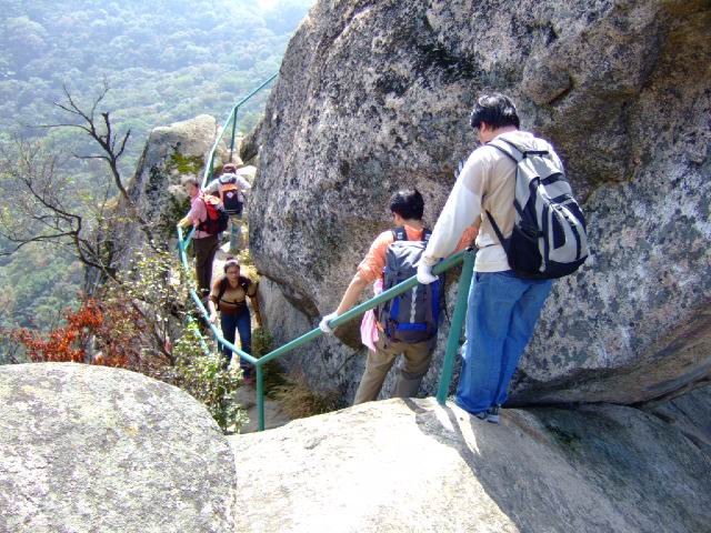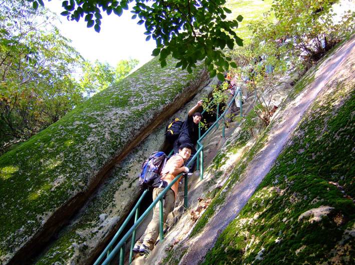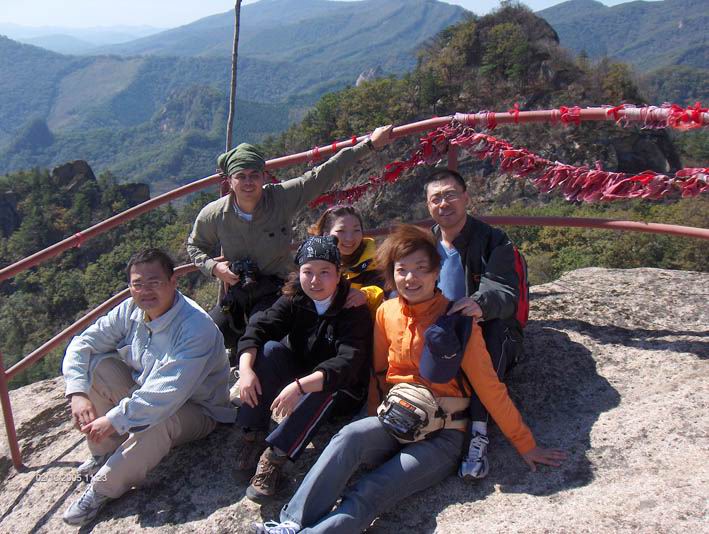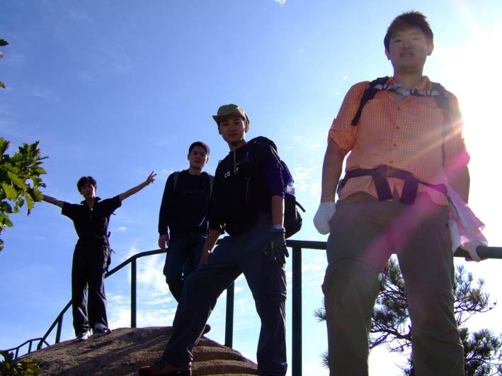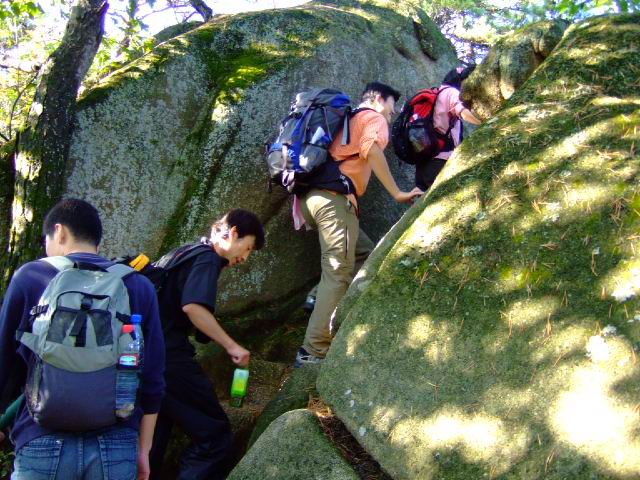 因为人比较多,怕大家体力差距比较大,俺还是决定断后,让俺老婆领路,实在不行就哄着走!事实挠挠是个非常优秀的同学,带路,协助每个同学过危险处,为大家拍照……好同志,非常感谢!还好,虽然大伙几乎都不熟,但很快大伙就打成一片,欢歌笑语登山之后就开始响起!我的担心还是多余的!