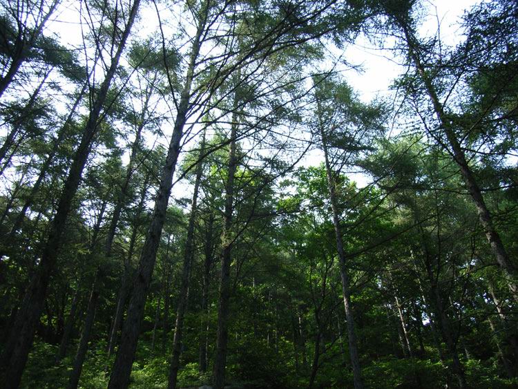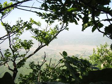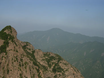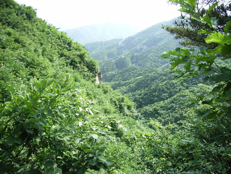 这时老师太与几位居士也安慰让我不要过意不去,没有事。但这事现在想起来我还是感觉特过意不去,这里友情提示各们看官,以后可要小心不要像我这样冒失啊!!过了一会儿那位问我话的居士出来叫岩羊,说师夫要见见他。看来岩羊的佛缘比我深啊,我是硬闯他是被招见的,比我层次高啊。岩羊进去了一会儿出来后,慧圆师夫也给他写了几句话让居士带出来给他,写的什么当时看过,现在忘了。后与师太谈起闭观的事,师太说与她同住的居士小刘去年闭谷不吃不喝了四五十天(具体多少记不清了)呢,真是太神了!!收拾完东西我们决定再上到垭口看看能否穿到水库那边去,老师太说她走过那路,送我们上山为我们指路。延着昨晚上山的路再次上山,老师太体力挺好的,一路上没有休息。到达垭口时遇见了爷三个,经交谈得知三人是从水库那边的村子过来挖人参的,水库的船坏了,他们是划着用汽车内胎自制的小船过来的,我们是不可能联系到水库的船到水库那边的村子的,从山上走太远了得走一天吧。好吧,只能原路返回原计划从水库穿过去到步云山是不可能了,下山后时间够用的话就去孙家窝棚踩线去。我又在垭口拍了几张水库的片子,就开始吃饭了。下山第六次到龙潭寺,这次没做停留和师夫打了招呼后就急忙下山去了,好在昨天上山是走水路上来的,今天下山走的旱路和昨天没有多少重复的,但一路上的风景实在没法和水路相比了,一路也就没拍片。两天来没有怎么被太阳晒着的我们,猛的被太阳这么一晒都受不了,表现最强烈的就是我,最大的愿望就想喝口冰的百事可乐,一路嘟嘟囔囔:下山第一件事就是买瓶可乐喝,放~魂这时也开始有意挑逗我,给我讲:拿起一瓶冰得的瓶上粘满着水珠的百事可乐喝一口,可乐咕噜滑过喉咙......想想都要疯了,一瓶冰百事可乐就是我全部的愿望......就这样在半疯中我们下了山,看到了山门我健步如飞地奔了过去,还不知残酷的事实在等着我,除了山区小厂出的那种劣质饮料外没有其他任何饮料......还好我比较抗造,没有被残这酷的事实击倒。为了我的愿望,为了那口冰的百事可乐我们继续前行。进村子找到了唯一的小卖店再次令我失望。