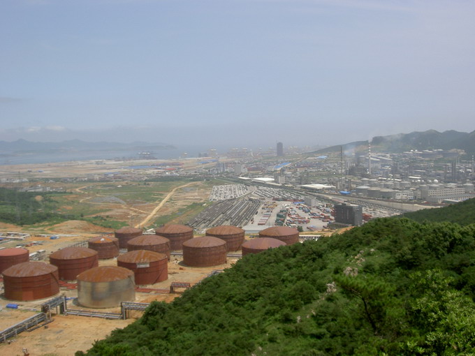行程:本想到新港从最南端开始穿越,考虑到下午还要到海边到玩,加上出太阳了,采纳了冰河的意见,就从大孤山作为起点。9:00左右到达终点站大孤山开始,顺着公路往北走,到石化厂区墙外,有明显的小路,穿过很粗的输油管后,到达山脚下,为了看北良港,决定向西边的小山穿,穿过小山,下到路面,经过一座小桥,有一座孤山,被公路隔开,山后就是北良港,也是观看北良港的最佳角度,于是登上这座孤山,北良港的全貌便在眼下,走到山的尽头,是被劈开的山崖,还有进港的公路隧道和铁路隧道,幸好有防洪的水堤可以下去,再次下到公路上,穿过桥,桥下是成排的运粮的专用列车。来到北良港派出所,从其后的山坳中再上山,为上山脊向东穿越,没有路,在草丛中行走,好不容易在山腰中找到一条路,走到尽头又是被劈开的断崖,只好再次开路向山脊挺进,到达山顶后可以看到石化的厂区全景,继续顺着山势走,开山的机械声慢慢的靠近我们,居然的山顶上展现在我们面前,可怜的山成了一面黄土坡,顺着被破坏的山体,顺着被堆集滚石,下到了大渔沟村,远处可见传说中的大渔沟水库,到村中补水,居然是大桶水,一打听才知,村中的水已经没法喝了,当地居民只能饮用大桶水了,更别说水库中的水了。时间是13:15,天气太热,大家已经无心再穿越。这里居然通公共汽车,村民说在14:30左右有一趟车进来,我们不想等那么久,顺着土路走过了一个村子,从图上看可能是后将军石村,在那儿花了10元钱打车到了开发区。15:00乘上了开往市内的公交车。