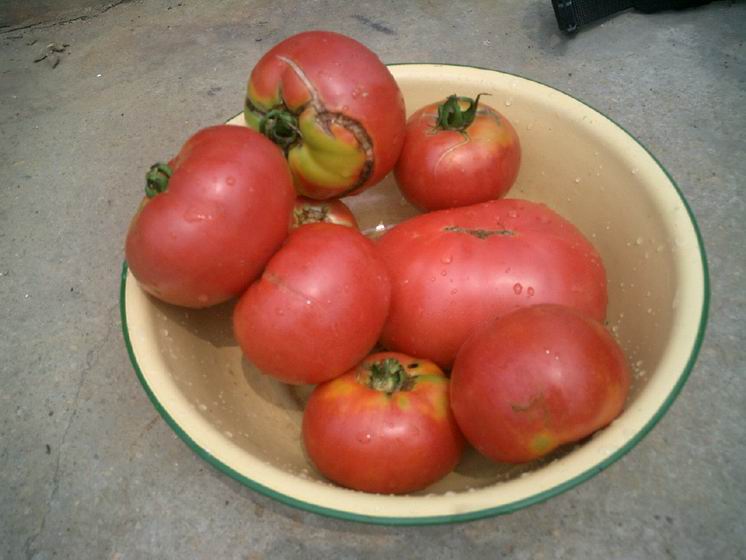 瞧这西红柿,多诱人呐,味道嘛,大家都认为是最为正点的,口味极佳,呵呵,绿色食品呐,鸡粪肥料!