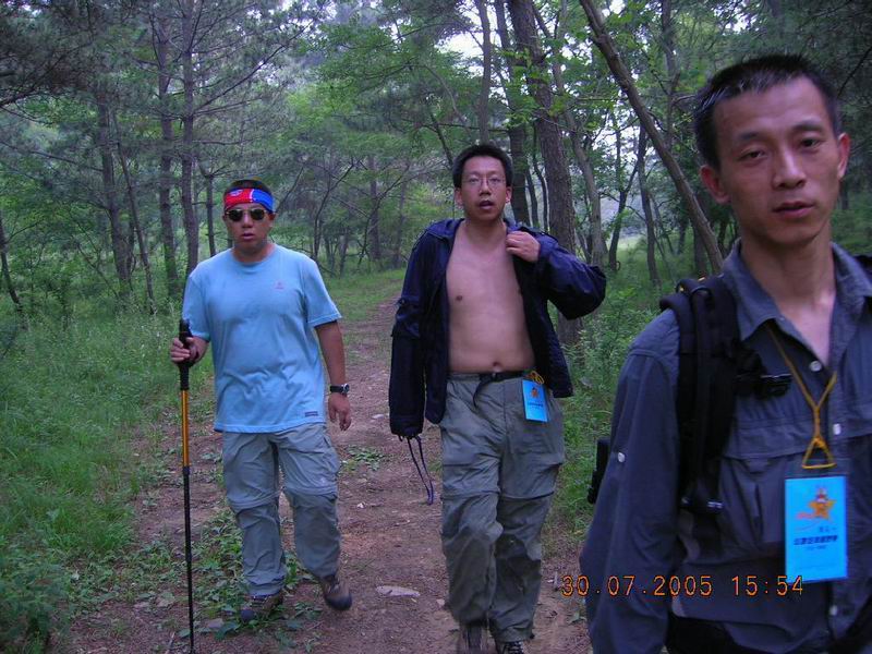渔夫-----我们“冠军队”尊称他为姐夫,原来是替补队员。他在没有任何思想准备的情况下就被推上了主力。看似不常出来自虐的姐夫却对地图很有研究。没听过识图的培训课,却能很准确地判断出方向和哪个山头,令我们十分佩服。这个季节,在山里穿越,每个人都汗留浃背,渔夫更是,平时登登大黑山,童牛岭也没怎么出汗,用他的话说:“我今天把一年的汗都出了。”
