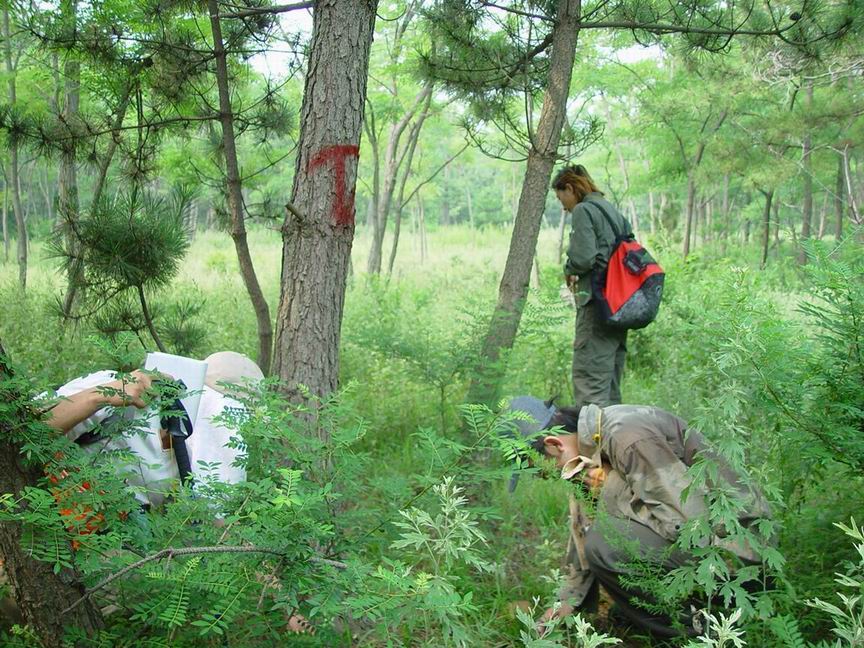 没有得到具体的指点我就只有继续找土包。不远处有一个不高的土包,旁边也有一棵树,就是那里了,我飞奔过去……没看见点位,就看见一群猪在那乱拱--难道我进了传说中猪八戒的高老庄?