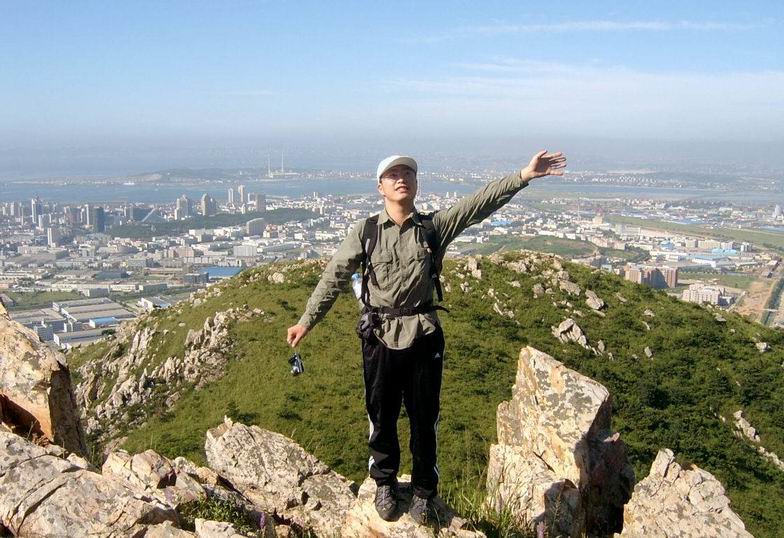 8:50分,人员陆续登顶(不知峰名,是今天攀爬的第一个峰顶就叫1号峰吧)。从山顶看四周的风景是美丽的,带相机的同学拿出相机四处拍照,天鹰赞叹着:“一览众山小… … …”。而我惊奇的不是景色,发现一路攀爬到顶两腿变得轻巧起来,呼吸已经通畅、轻松,不再有痛不欲生的感觉。嘿嘿,心中窃喜:“疲劳期应该过去了吧”。借大鱼后来嘣出的一句名言:“没想到,幸福来得如此之快”。转身望着对面布满钢架和天线的大黑山主峰,突然产生了强烈攀爬欲望。