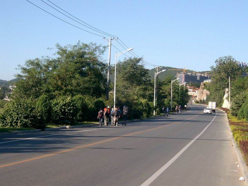 我是第一个冲出饭店走向公路的人,雄赳赳的走在最前面,不是想当头驴,只是迈着疼痛的双腿尽量先行,不至于给队伍拖太多后腿罢了,呵呵。