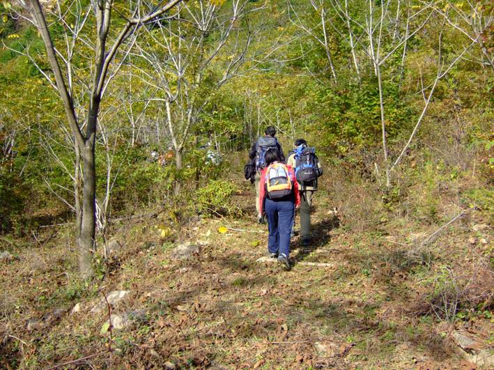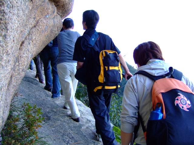 我们一人摊了7.5元由一老者带我们进山走野路直上莲花峰!由于怕人多队伍大,所以打散了出发,三五成群的哩哩啦啦的走!