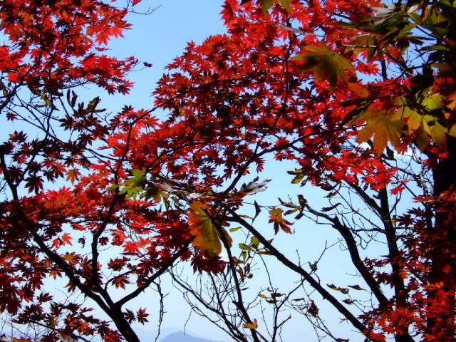 可是我们前脚刚走,一夜苦霜,便满山红叶!好是遗憾!