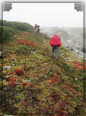 在大峰顶,偶的相机彻底没电了,从老九那里借了电池才拍了纪念性的pp。所以最后一天下撤的时候偶干脆就把相机装到了包里,一张也没拍了。