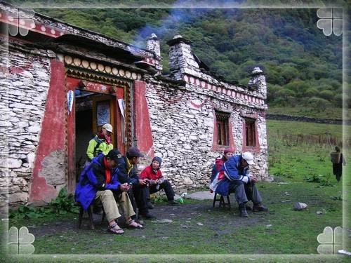 18:13 在头道坪的藏民家院子里等饭吃。好不容易有了手机信号,每个人都在抱着手机狂发短信。也是在这里,收到先出去的小狐狸关于包车等等的各项信息,收到Nicole关于走残在大峰的情况汇报,从而帮助我们做出了第二天多雇佣马匹的明智决定。