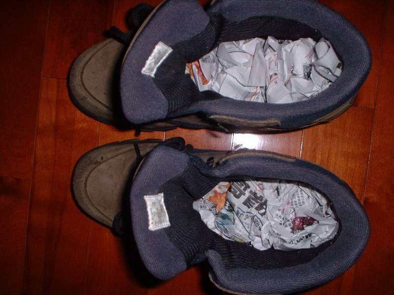 放进水里之前,鞋里面塞满了报纸