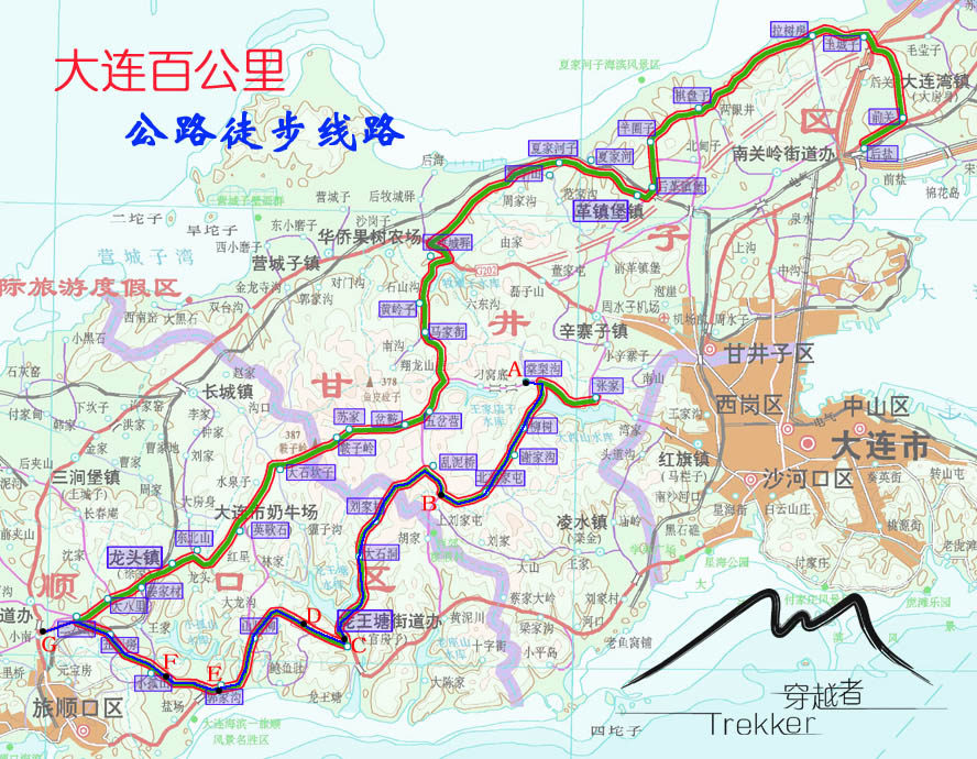 小凡、彩虹雨、大笨鱼。以上三人在D、E两点之间结束徒步。