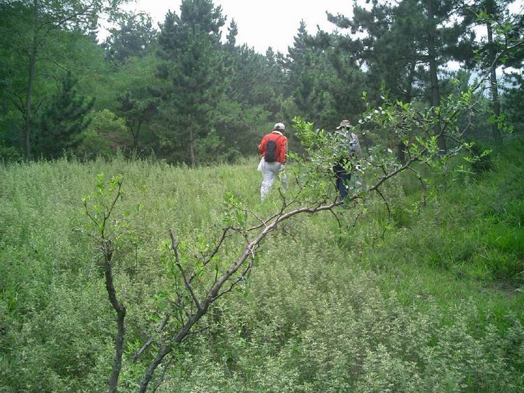 沿着方向先走到了15点,我要求休息一下,因为我有些晕,山爬的太急,而我一周前的感冒还没好,只一个鼻孔喘气儿,太难受了,在那儿耽搁了一些时间,又开始上路了,经ALIAN提醒,我把风油精抹在鼻子上,居然能喘气儿了,嘿嘿,真感谢ALIAN。