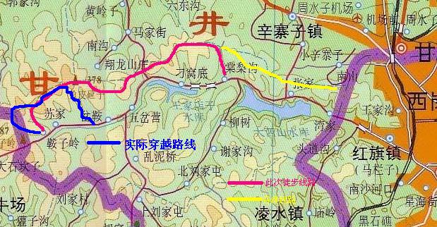 实际活动路线和计划路线对比:相差十万八千里!计划以后一段一段从鞍子岭往棠梨沟挪!下次穿山路线起点就是岔安七队位置上山!