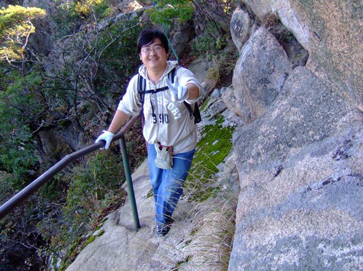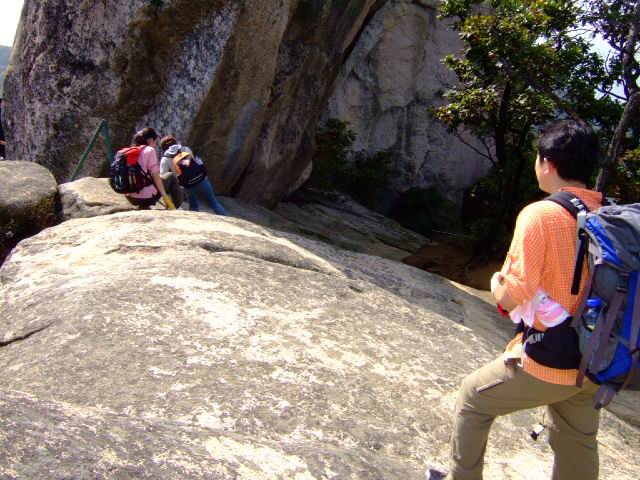 因为人比较多,怕大家体力差距比较大,俺还是决定断后,让俺老婆领路,实在不行就哄着走!事实挠挠是个非常优秀的同学,带路,协助每个同学过危险处,为大家拍照……好同志,非常感谢!还好,虽然大伙几乎都不熟,但很快大伙就打成一片,欢歌笑语登山之后就开始响起!我的担心还是多余的!