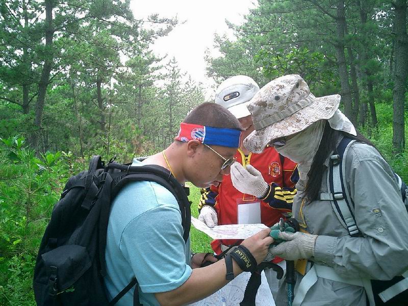 渔夫-----我们“冠军队”尊称他为姐夫,原来是替补队员。他在没有任何思想准备的情况下就被推上了主力。看似不常出来自虐的姐夫却对地图很有研究。没听过识图的培训课,却能很准确地判断出方向和哪个山头,令我们十分佩服。这个季节,在山里穿越,每个人都汗留浃背,渔夫更是,平时登登大黑山,童牛岭也没怎么出汗,用他的话说:“我今天把一年的汗都出了。”