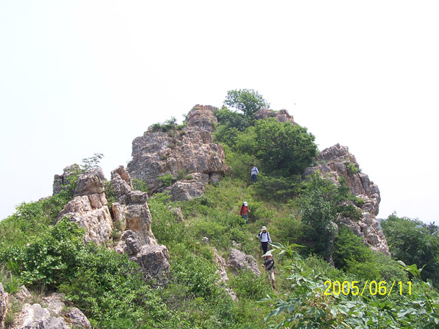 行程安排:乘202路有轨电车到河口车站,顺旅顺南路徒步到蔡大岭附近上山。顺着山脊向西走,大家被山上的桑椹吸引,加上天太热,体力与水的消耗量太大,没能按计划走到棠梨沟,大家商定在黄泥川下撤,一路的风景很不错,特别是那段岩石,可以攀爬,也可以绕过。这次走得不完全,有机会在秋天走一次,在黄泥川看到有许多果树,秋天走的话一定后收获不小。