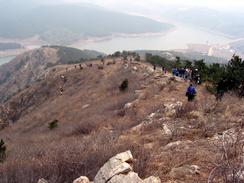 二登步云山 带着第一次的遗憾,我们开始了第二次的步云山之旅。因为有大力家哥哥带路,我们很顺利地从一条捷径登上了山顶,不愧是辽南还是大连的第一高峰阿,呵呵~~这位哥哥还带我们去了那个山洞,还记得大家当时因为是白天爬山谁也没带头灯,是那哥哥生了一堆火给我们照路,在黑漆漆的摸了一半的时候,我想起了我的电话上带个小手电,