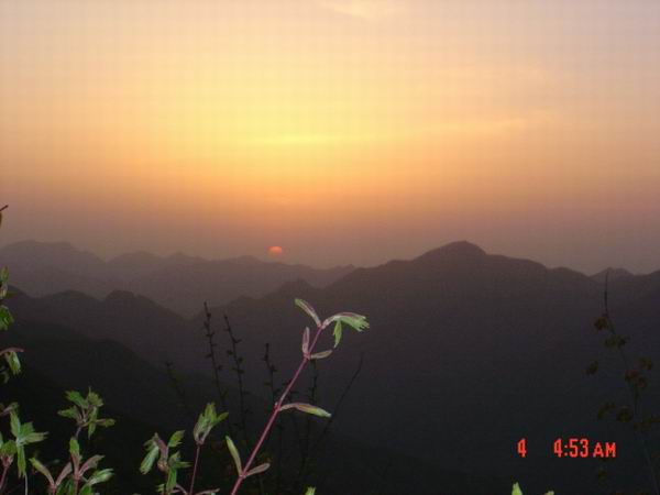 就这样一个黑乎乎,伸手不见五指的夜里,我们在乱石丛中开始了爬山了。没有走传统的盘山路,领队给我们选了一条乱石路,脚下还有流水。当时大家的装备也不是很好,好像当时穿了登山鞋的两个MM都光荣落水了。中途ZY因为脚磨了无数个泡,一个人光荣下撤了。也从此让俺真正地认识了ZY同志,稍后给他做个专辑~~~ 虽然历经艰辛,步云山日出还是很美的 MqUlckff.jpg