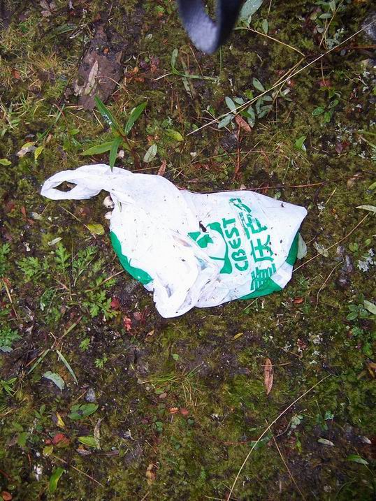 6 天的燕子沟之旅结束,我在这里写这篇文章回顾此行不愉快的一部分。希望能给大家提个醒,收拾好自己的垃圾,并希望文中提到的人和队伍能够在以后的活动中注意环保,能作出补救措施更是我们大家所希望和欢迎的。 2005 年10 月2 日中午1 点,我队来到燕子沟倒栽葱营地,到达营地时,我和队友都表达出了对这个营地的赞美之情,开阔,干爽,美丽,近水且水质甘冽,让我不由得拿起了5年前人中海营地做比较,得出的结论时是,居然还有能与当年的人中海营地相媲美的地方让我们露营。 约下午4 点,正在修整的我们看到大队的人马来到了倒栽葱营地,顿时打破了营地的宁静气氛,我们最初有些遗憾的觉得怎么这里成了个旅游热点地区,很快,一种乐得有伴得情绪占了上风,愉快得接受这些新来得帐篷。从对话中我们了解到这是一群重庆人,28 个人,不是一个俱乐部,是重庆侠客行组织的。营地开始下雨,看着这些人慌乱的撑着崭新的帐篷,我也上去做个热心人帮了些忙,并提醒他们注意收拾自己的垃圾。在随后的两个小时中,总共大约又有30 个人到达,据我了解的情况,其中除了两个人是成都的外,其他的都是重庆过来的。这个夜晚在喧闹中度过。   主要事件发生在第二天下午,也就是10 月3 日下午,我队在营地修整,约有一半的队员在倒栽葱沟加固小桥。大约50 人的重庆队伍上午9 点出发去看冰川,下午2 点左右返回倒栽葱营地,并开始收拾行李准备下山,这时的情况看起就比较糟糕了,营地上开始出现大量的垃圾,有生活垃圾,还有雨伞,烂雨衣,酒瓶,气罐等,这些东西在下面的图片中列出。我队队员站在雨中,不停的提醒这帮人收拾自己的垃圾并带下山,包括侠客行的一位自称是领队的人,对我们的善意提醒,他们的态度倒是不错,满口答应,但随着他们和运送他们行李的马队的离去,营地周围留下了大量的垃圾。还有一件事情我还要提一下,在10 月2 日傍晚,一个重庆侠客行的成员提着一把大刀在营地上乱砍红柳树,我制止他时他慌乱的找了两个荒唐砍红柳的借口――要打地钉和红柳离他的帐篷太近了,幸好在我们的制止下他停了手,不过已经有两丛红柳树遭殃。 YBpBg244.jpg