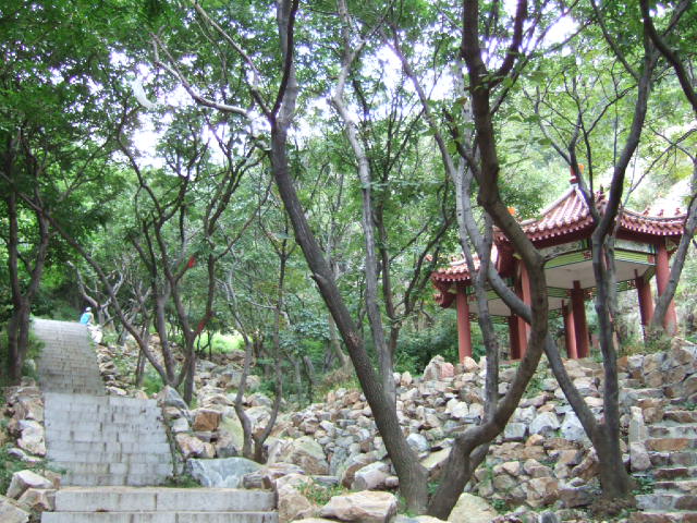 行程及时间: 从家出发——6.35 大连乘轻轨——开发区站下——乘4路至终点杏林小区 穿越杏林小区沿柏油马路进山——8.30 沿台阶登山进入石鼓寺 石鼓寺——点将台——电视发射塔(或者是移动发射塔)——10.40 中午午休餐饮——10.40-12.00——休息时间比较长(是因为老婆躺那大石头上睡着了)! 绕过电视塔——从塔后直下小路下山(比较危险)! 然后沿一石壁攀岩而下(很危险,估计有20分钟路程) 然后同另一小路汇合(正常路线,进入林荫小路——一直下山到观音阁——14.10 观音阁——果园——大连大学——15.00 大连大学乘5路——保税区南门下(此位置为大连至开发区大巴开发区终点) 大巴起点——大连市内——18.00 费用: 大连市内公交车1元 清轨车票4元 开发区内公交1元 进山门票10元 开发区内公交1元 开发区至大连市内大巴2元 水2元(山内可以补给水,留瓶就成) 饭菜自做 合计:21元 还不是很累! 但比较危险! 尤其在从电视塔往观音阁去的小路,太危险了! 估计是我俩走错路了!——看路迹,走的人也不少! 不过我俩一路上一个人都没碰到! 当时有点心慌! 我估计总得有掉下去的! 早晨计划从家出发6.30分,结果由于老婆一早懒床,迟到五分钟! 但好在按照计划7.30到清轨站,没晚! 在香炉礁站赶上7.20到保税区的加班车,提前! 到开发区站下车后,乘上4路,记着是清轨站这侧乘车! 到终点杏林小区,穿过小区,进入进山公路!