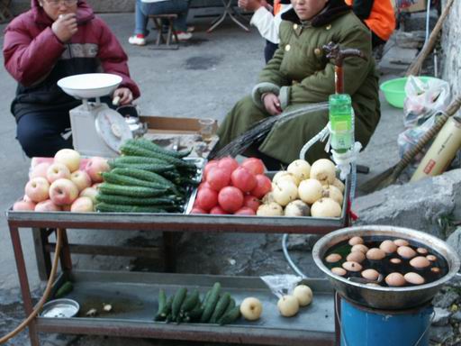 除了煎饼卷大葱,路边还有很多这样颜色好看的小摊,人民群众的智慧真是让人钦佩,那些自制的喷水装置让你觉得2元/根的黄瓜味道真是鲜美无比。