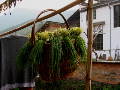 ——第一次品尝怪怪的清明果。在婺源呆了几天,吃到不少炯异于北方的特产,唯独清明果令人难忘。清明果,不言而喻,是清明节前后的产物。这是种绿颜色的面食,做成饺子或小圆馅饼的形状,里面包着馅。在李坑好奇地买来品尝,一个字:不好吃。后来一路走下去,各个村庄家家户户都有清明果,口味原来各不相同,最后在大鄣山吃到最美味的,并且知道了它的来历和做法。从大鄣山接下来两天的徒步,包里多了六个圆圆的大鄣山老余家做的清明果,本想背回大连给朋友们尝一尝,怎奈婺源暴热的天气和长途汽车时间的甬长,等到了上海,这亮晶晶的清明果变成清明毛果,长毛了