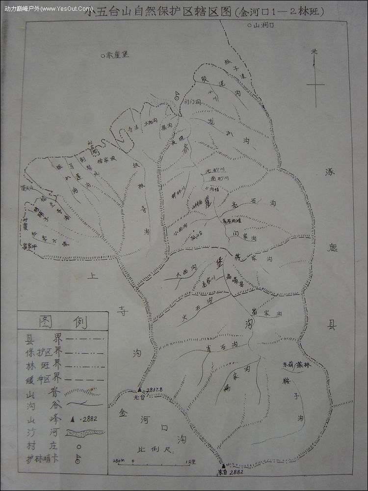一、景点介绍 小五台位于张家口市东南部,跨蔚县、涿鹿两县。因有东、西、南、北、中五个突出的山峰,为区别于山西省的五台山,因此而得名小五台山。 其地理位置为东经114°50′-115°15′,北纬39°40′-40°10′,东西宽40KM,南北长45KM。小五台山形成于中生代燕山运动。其最高峰东台海拔为2882M,山峰峻峭,小五台山气候属暖温带大陆季风区。由于山地的影响,在气候上表现为北方山区的特点。一年中温差大,降水大且时间集中,风大、寒冷、冻冷时间长,无霜期短等。小五台山区水资源比较丰富,主要山谷皆有溪河。五个主峰成为天然的分水岭。北、西两台之水注入洋河。南、中两台之水入壶流河。东台之水注入拒马河。二、生物资源小五台山地区植被类型为夏绿阔叶林,由于山势高峻,气候垂直分布显著,植被、土壤、垂直带谱比较完整,物种饱和度大,区系组成复杂,植被群落类型多,是华北植被的典型代表地区。但近200年来的连续开发,植被屡遭破坏,原始森林荡然无存,现均属天然次生植被。1983年建为省级自然保护区,其面积为22107公顷。小五台山地区植物种类繁多,高等植物约有674种,其中木本植物约185种,草本植物共622种。中国特有成分桦木科的虎榛子、无串子科的文冠果、菊科的蚂蚱腿子,还有小五台山特有种:小五台紫莹小五台风毛菊、中国风毛菊等。有华北珍贵植物臭冷杉、杜松等。随着海拔高度的变化,植被垂直带谱分布明显。由于森林开发较早屡遭破坏,其垂直带谱呈犬牙交错状态分布。小五台山峦林密,怪石林立,水草丰盛,洞穴棋布,为各种动物繁衍生息创造了得天独厚的条件,人为干扰少,动物资源丰富,初步调查有动物137种,其中两栖类2种、爬行类7种、鸟类96 种、哺乳类32种。有世界珍禽、国家一级保护动物褐马鸡、金鸟、金钱豹;二级保护动物斑羚;还有豹猫、狐、狍、獾等。两栖类有中华大蟾蜍、中国林蛙等。此外,昆虫资源丰富,计有1500余种,主要有北方蓝目天蛾、暗脉粉蝶、台湾雄峰等。小五台山生物物种饱和度,垂直带谱,珍稀动物、植物资源、复杂的生态系统,均为河北省之冠,加之山势巍蛾,壮丽挺拔,是地质、考古、生物资源、气象研究等重要的科学研究基地,也是高等学校有关专业理想的教学实习基地。小五台山森林公园是在小五台山自然保护区基础上,1993年省林业厅批建的省级森林公园,主要包括杨家坪、金河口两大风景区,公园总面积14739公顷,主要景点景观50余处,有著名的墓、灵山圣水、教堂遗址、高空草原、杏花源、清凉界、珍珠潭、佛光神影、一线天、神龙潭、天桥遗迹、悬空寺(清泰寺)、塔林、台山晓日等景点景观,公园内山峰险峻,有深涧洞穴,有嶙峋怪石,有清澈溪流,有茂密森林(尚有原始森林),有烂漫花草,在永冻界缘,一脚置于温暖的草丛,一脚踏在寒冷的坚冰,心中顿生"一山有四季,咫尺不同天"的感觉,其乐无穷,其趣无比。公园内有丰富的野生植物,有生动的珍禽猛兽,据不完全调查,己发现高等植物1350余种,动物137种之多(其中仅国家一、二级保护野生动物就20种)。小五台山还是佛教胜地,早在唐朝,僧人就云集这里,明、清时期又重修和新建了大量佛寺道观,虽经历史沧桑,多毁于一旦,可文化风韵尚存,向世人诉说其悠久的历史。行前准备了解一下气候各个季节温度的统计:五一和十一前后,山顶会有积雪夏天的温度一般在15℃左右冬季温度在-15℃--20℃,春节前后最低温度达到:-36℃具体的天气状况,可跟小五台西金河口管理处确认天气(电话0313-7240024,联系阎主任,或赵师傅,姚师傅)。 二、装备 夏天装备 夏天考虑到小五台雨水较多,另外山上海拔较高,如果要在山顶扎营的话,要求帐篷防风、防雨效果皆好。地钉是铁钉,因为有的地方铝钉比较难扎下去。睡袋可保证最低温度在-5oC 左右。 登山杖,冲锋衣裤、鞋子要求具有很好的防水性、防风、和透气性。抓绒一件。手套一副,背包防雨罩必带,山上雨水较多。另外,自己准备两个特制塑料袋,将衣服和睡袋分别封包后再装包(也主要是用来防雨的)。内衣、袜子等多带几套,以备换。必备垃圾袋。可用结实的塑料袋,必须带走自己产生的垃圾,尽可能的带走别人的垃圾。对讲机,手台,GPS有就带上。 气炉以及炉具,气炉在某种情况下还可以烘烤衣物。 指北针、电筒(头灯配套电池),军刀、防晒霜、太阳镜、个人用品等。 食品: 水5~6升,运动食品能量棒,劲饮,劲速等,可带面条、压缩饼干、巧克力、牛奶、果酱面包、牛肉干、葡萄干、黄瓜、圣女果等高热量、易吸收食用方便的食品和水果。 药品: 防晒霜、霍香正气,感冒药、消炎药、好得快、肠胃药、创可贴、三角带、维生素药片、净水药片、蛇药。 三、线路分析 1、线路行程 赤崖堡-(4.5小时)-北台-(2小时)-东台-(4小时)-三岔路-(1.5小时)-西台-(2小时)-中台-(2.5小时)-南台-(4小时)-下辉川 2、客观分析 全程大概50公里。 总上升大概2500米。 制高点东台是2882米左右。 道路不明显,山上几乎没有路。山里感觉不好的人,寸步难行。 危险度2.5级,强度3级,技巧度2级,绿野级别系数3级。 北台和南台下2200米处都有水源,中途无水源。各台下降半小时即可取水。 距离很远,到河北了。离北京在200公里以上。 四、注意事项 1.活动人数不能过多,太多人都没有地方可以扎营。 2.要做好充分的准备,小五台的小气候很明显,天气变化极快。我们两
