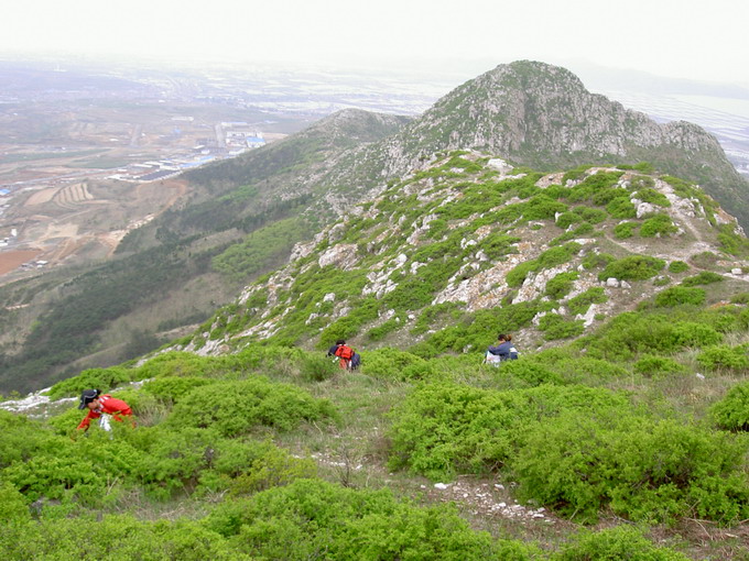 行程安排:2005年5月7日早晨10:00从夏家河子小公汽的终点站出发,向着西南侧远处的高山进发。50分钟到达安山寺。香火还可以,然后从西北侧的山角处向山上爬。西部的山体开挖很严重,已经挖到了山顶,行进时还得注意脚下。主峰鞍子山,较陡峭,且比较狭窄,岩石地貌,须手脚并用上山,山脊线明显,向东一直可走到砬子山,我们这次从中间的一条山脊向南下山,到由家村为终点。今年的雨水好,野菜很厚,我们每个人都满载而归。大家一致通过每年五一期间要做为一个固定活动内容:来此地挖野菜。