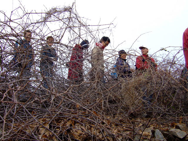 总结——很抱歉此次活动组织的不是很有意思!即没看头(景色——山上一片破败景象),又没玩头(没附加一些游乐或者游戏之类的点缀,下次改进——让大家乐哈哈一路)!蛭?猩街写┰侥谌荩?行┩?У呐涫涡枰?⒁猓??话紫沽耍×硗猓?欢ㄒ?嘲??庋?艹浞终展税踩?矫妗??饕?悄馨涯愕男∈痔诔隼矗“巢慌伦橹?疃???掠幸馔馇榭觯?lt;br>以下内容给新驴看看——冬季已经来临,喜欢户外的同学,不必准备很多装备来应付这种活动的,千万不要成为户外装备的奴隶!户外装备得了银子了,除非你很有钱,不太在乎!冬季活动呢,只要注意我说的方面就成了,一个是鞋子,这个呢,应该奢侈一点,毕竟脚是你最该爱护的对象,成天的载着你到处流串,多辛苦!有一双合脚舒适的鞋子很关键!因为经常要在山内溜达,所以尽量还要考虑鞋子的防滑性和耐磨性能!再就是花个六、七十块搞套吸湿排汗的内衣比较有用,因为爬山或者徒步不可避免的会出汗!出汗呢,就会湿衣服,一旦风吹或者停留,你会感觉身上嗖嗖冷!不仅如此,还会坐病,至少你的身体不好,可能就会感冒!这种东西,虽然不能把你湿湿的表皮都能透干,但还是能起点作用的!其它的就无所谓了,衣服呢,找个不怕刮的,或者经刮的,或者坏了不心疼的……都行!总之,不要把要过年的新衣服拿去穿山上去!要是那样——彪了!
