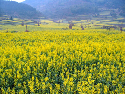 ——第一次走进油菜花地,近距离看油菜花,闻油菜花。虽然李坑的油菜花地比东北农家的自留地大不了多少,而且还竖着牌子:进地罚款。可是,谁能抗拒阳光下大簇嫩黄的油菜花娇艳艳地向你耍嗲呢?我不能。啉哒也把持不住,走进油菜花地回眸一笑,镜头里一片嫩嫩的鹅黄色包裹着她,顿时理解梅艳芳那首《女人花》的意境:女人花摇曳在红尘中,女人花随风轻轻摆动。。。