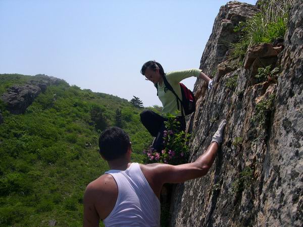 看照片颇有感触:大连地区大约以金州为界,以南地区的山上多山枣刺、荆棘类植物,夏天扎皮肤、冬天挂衣服,十分讨厌。建议带把类似砍柴刀样的工具,可以安排男生轮流在前面开路,这样可以大幅度地减少大部队的受伤。