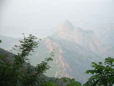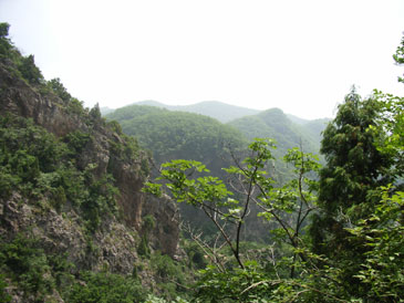 这时老师太与几位居士也安慰让我不要过意不去,没有事。但这事现在想起来我还是感觉特过意不去,这里友情提示各们看官,以后可要小心不要像我这样冒失啊!!过了一会儿那位问我话的居士出来叫岩羊,说师夫要见见他。看来岩羊的佛缘比我深啊,我是硬闯他是被招见的,比我层次高啊。岩羊进去了一会儿出来后,慧圆师夫也给他写了几句话让居士带出来给他,写的什么当时看过,现在忘了。后与师太谈起闭观的事,师太说与她同住的居士小刘去年闭谷不吃不喝了四五十天(具体多少记不清了)呢,真是太神了!!收拾完东西我们决定再上到垭口看看能否穿到水库那边去,老师太说她走过那路,送我们上山为我们指路。延着昨晚上山的路再次上山,老师太体力挺好的,一路上没有休息。到达垭口时遇见了爷三个,经交谈得知三人是从水库那边的村子过来挖人参的,水库的船坏了,他们是划着用汽车内胎自制的小船过来的,我们是不可能联系到水库的船到水库那边的村子的,从山上走太远了得走一天吧。好吧,只能原路返回原计划从水库穿过去到步云山是不可能了,下山后时间够用的话就去孙家窝棚踩线去。我又在垭口拍了几张水库的片子,就开始吃饭了。下山第六次到龙潭寺,这次没做停留和师夫打了招呼后就急忙下山去了,好在昨天上山是走水路上来的,今天下山走的旱路和昨天没有多少重复的,但一路上的风景实在没法和水路相比了,一路也就没拍片。两天来没有怎么被太阳晒着的我们,猛的被太阳这么一晒都受不了,表现最强烈的就是我,最大的愿望就想喝口冰的百事可乐,一路嘟嘟囔囔:下山第一件事就是买瓶可乐喝,放~魂这时也开始有意挑逗我,给我讲:拿起一瓶冰得的瓶上粘满着水珠的百事可乐喝一口,可乐咕噜滑过喉咙......想想都要疯了,一瓶冰百事可乐就是我全部的愿望......就这样在半疯中我们下了山,看到了山门我健步如飞地奔了过去,还不知残酷的事实在等着我,除了山区小厂出的那种劣质饮料外没有其他任何饮料......还好我比较抗造,没有被残这酷的事实击倒。为了我的愿望,为了那口冰的百事可乐我们继续前行。进村子找到了唯一的小卖店再次令我失望。