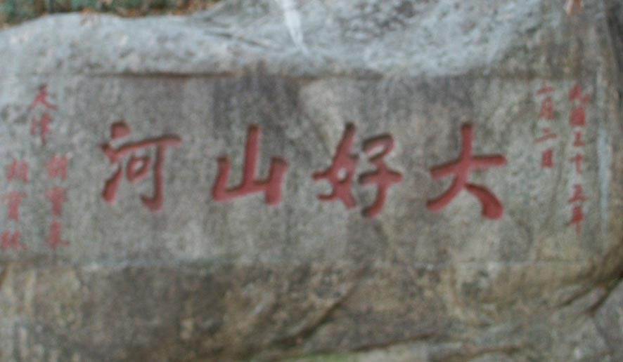 一路上好多石头上好多的千姿百态的字,恩,文化遗迹。那些古人在这里写了个“到此一游”若干年后就成了文化哩~俺要是写一个到此一游。。。警察叔叔肯定把俺带走了。这是什么呢?是差别?是层次?是境界?是炒作?我对自己的回答很不满意。